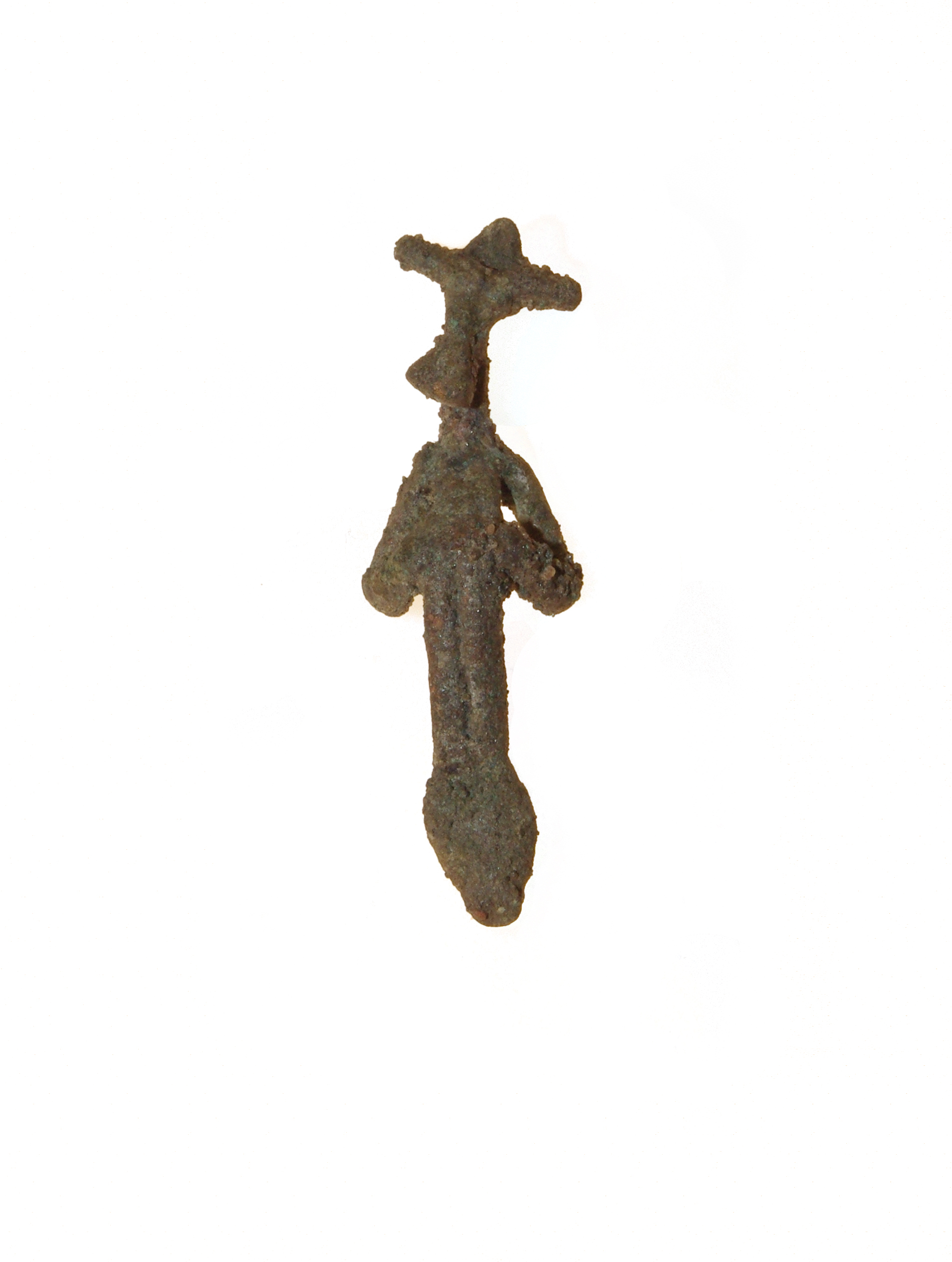 Public DepositedFront and side views of a lost-wax cast copper alloy figurine from Kuulo Kataa, Mound 130, Unit 95E 108N, Level 3. Height: 3.5 cm. Weight: 2.4 g. Kuulo Kataa, 4 July, 2000.