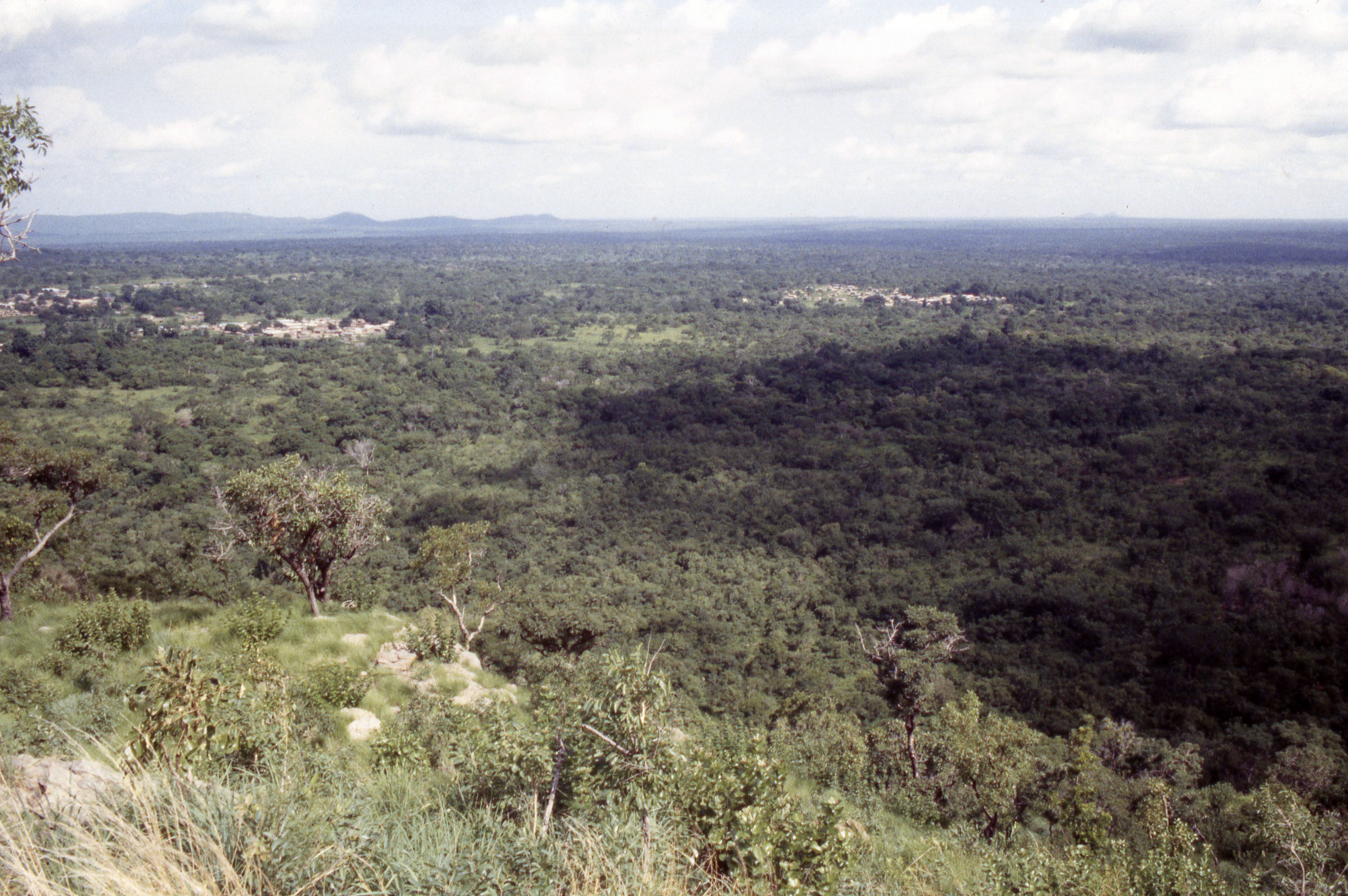 PublicView to the southeast, standing on the small hill west of Kabruno.The mountains in the distance are at the southern end of the Boase range. The village left of center is Gbao. Right of center is Samwa. Banda area, June, 1995.