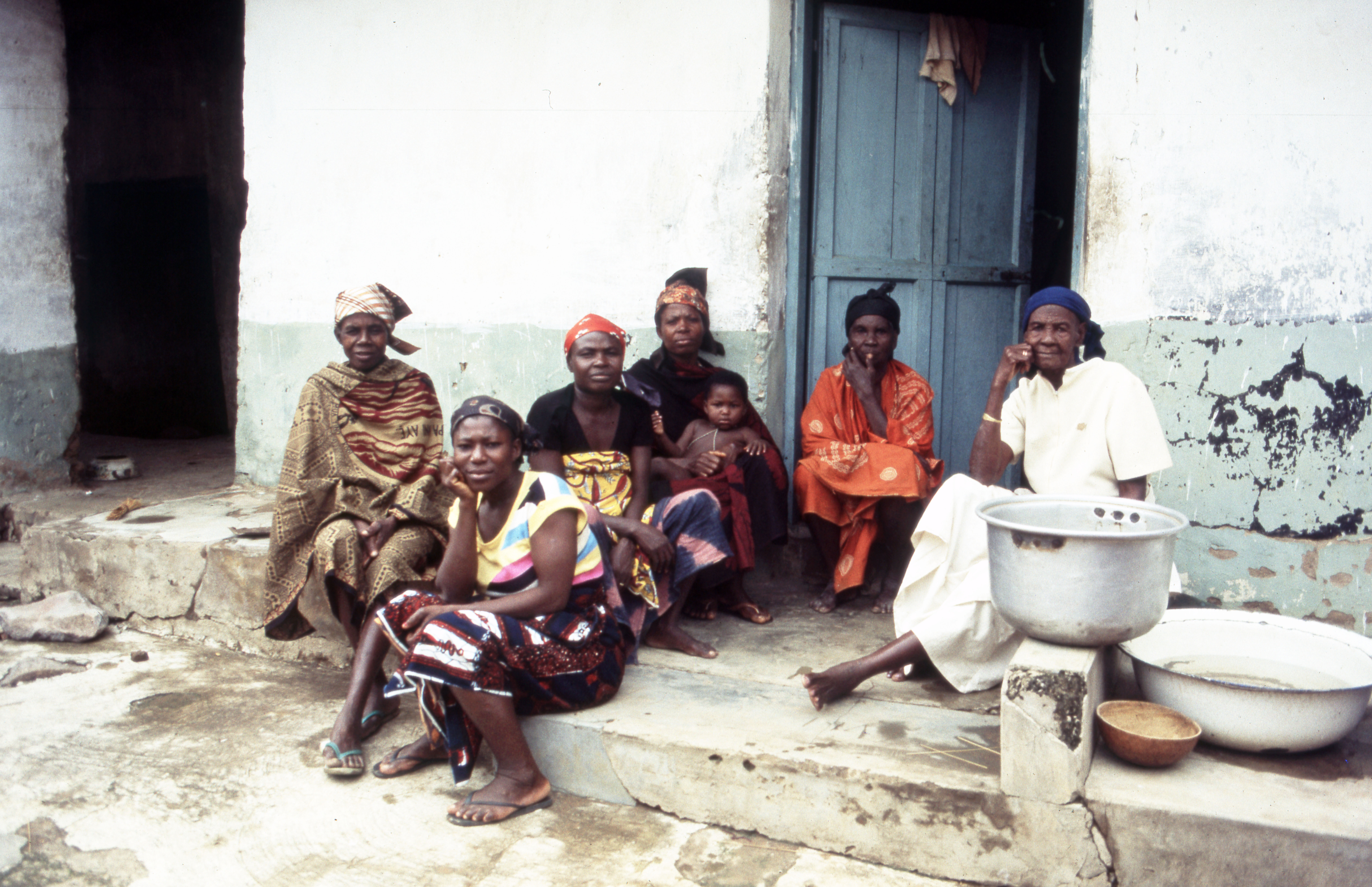 PublicWomen of Sielͻngͻ Katoo (royal house) relax on the courtyard steps of the palace on the day of the New Yam Festival (Finyjie Lie in Nafaanra). L-R: Ama Nyeni; Yaa Krah; Akua Kuma; Yaa Kuma; Akua Kyenkyenku; Kosua Dooko. Ahenkro, 28 July, 1986.