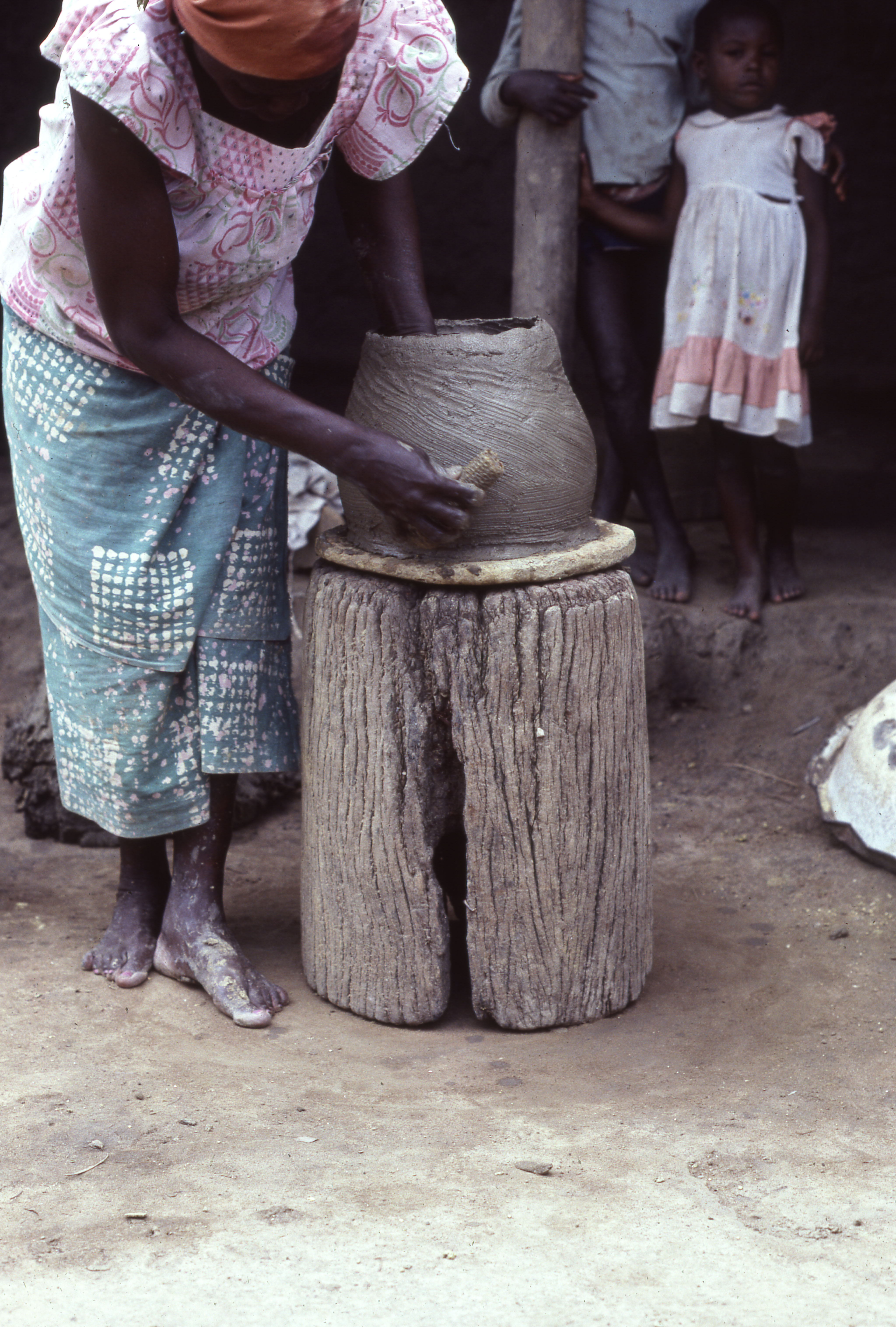 Molding a clay jar, Bondakile, 1982
