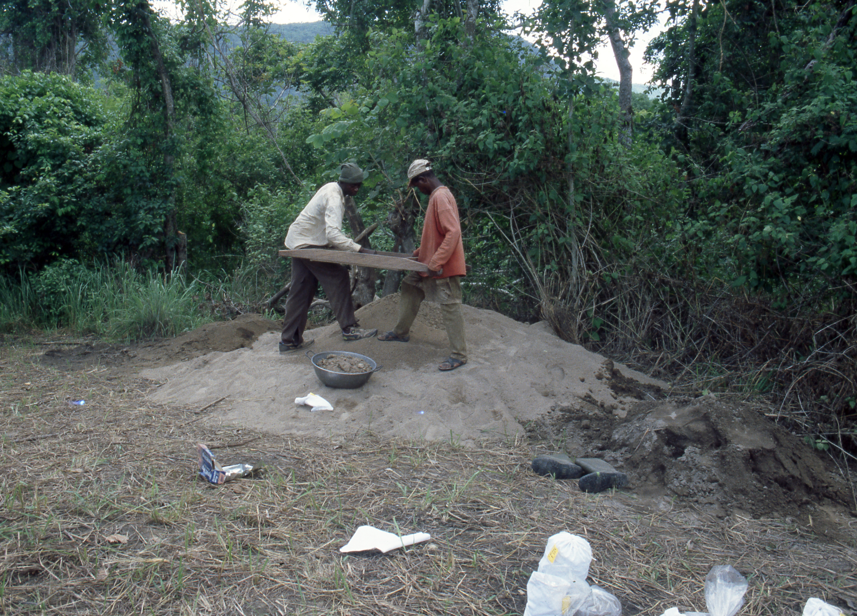 Screening excavated soil, Mound 102, Kuulo Kataa, 2000