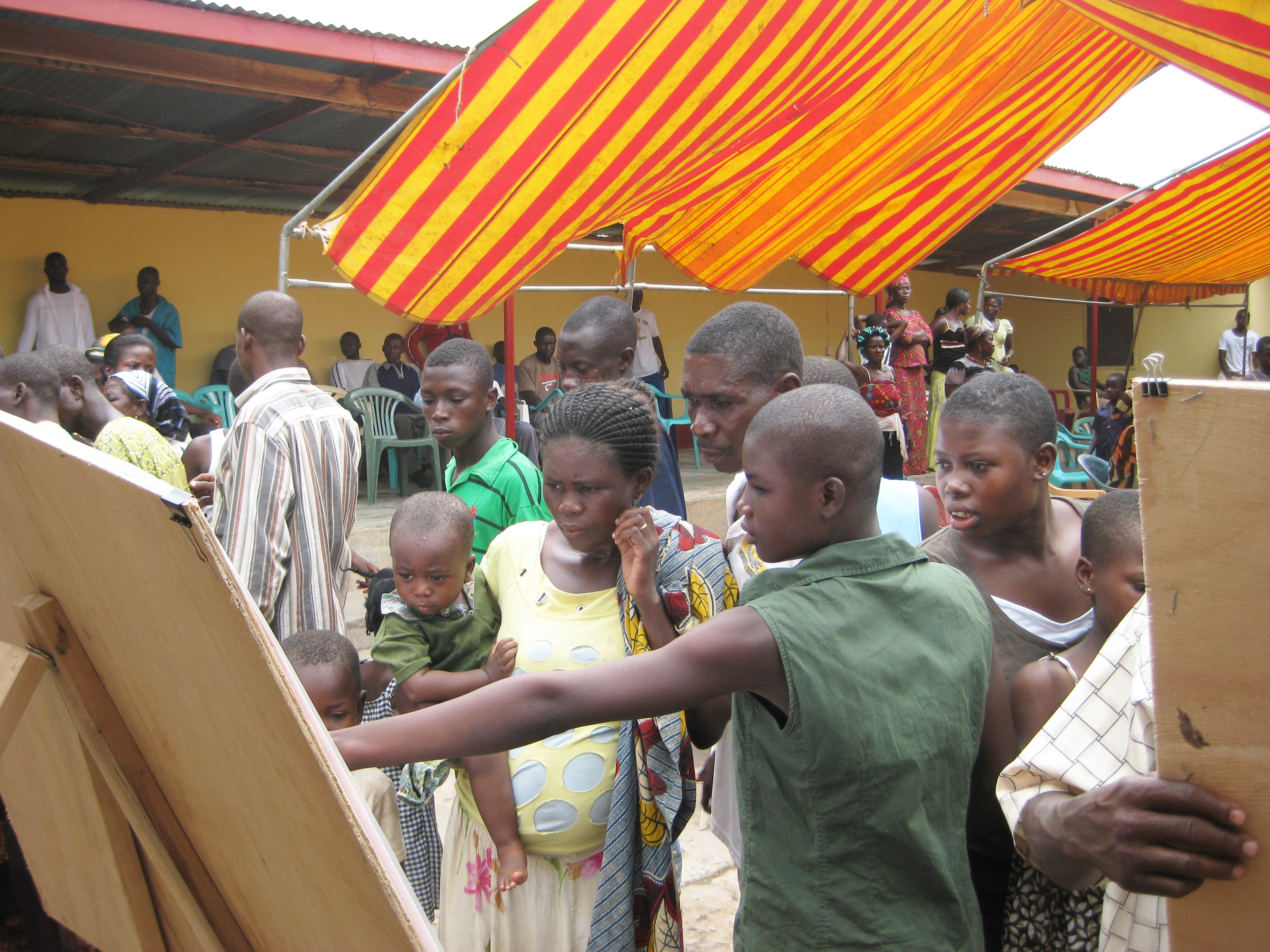 Public DepositedCommunity members discuss one of the informational posters on Banda history and archaeology launched at a 2011 community event. Banda Cultural Centre, Ahenkro, 15 July, 2011.
