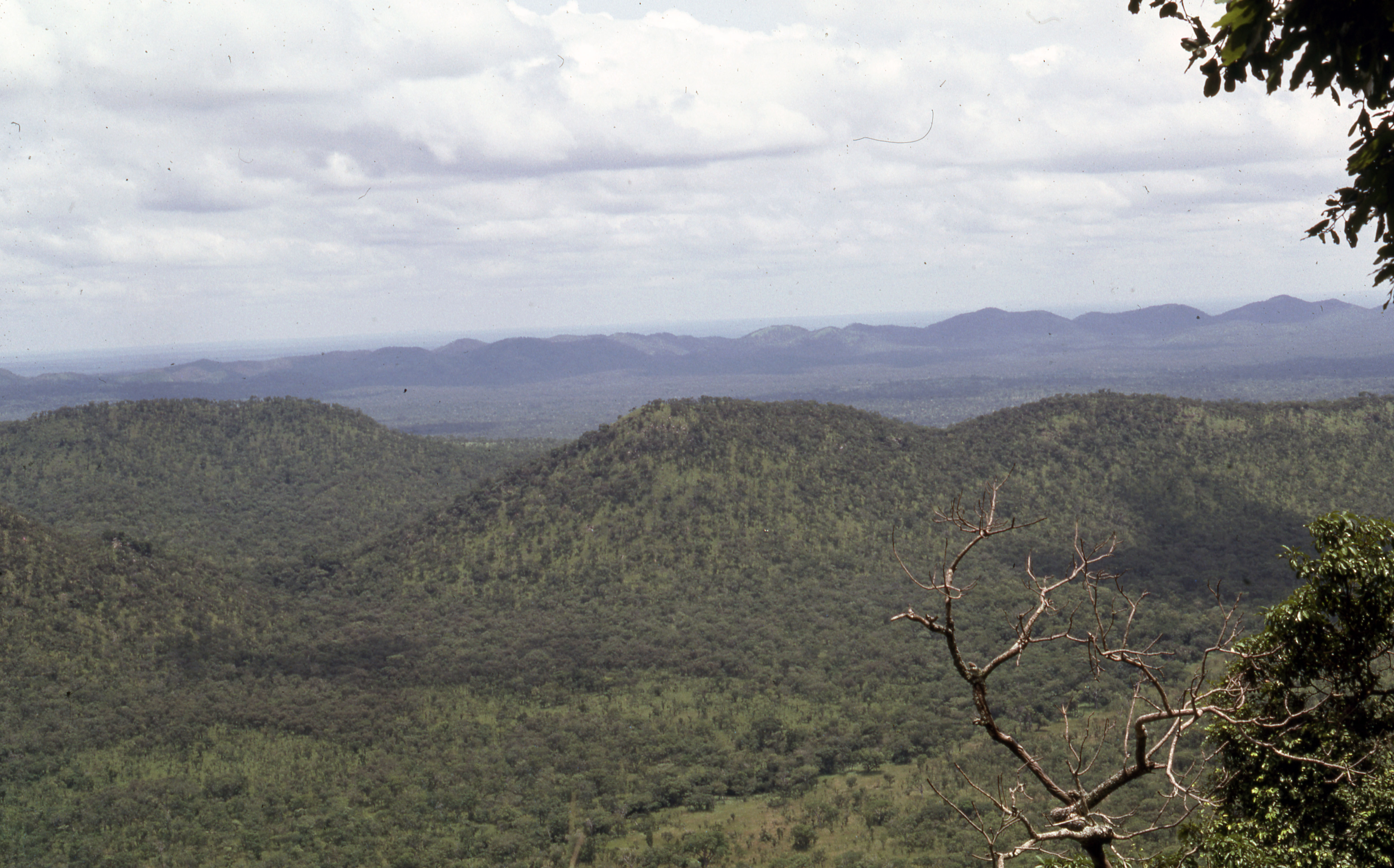 PublicView toward Côte d'Ivoire from the mountain ridge above Ahenkro, looking west across Bui National Park, a wildlife protected area since 1971. Hills west of Ahenkro, 31 August, 1982.