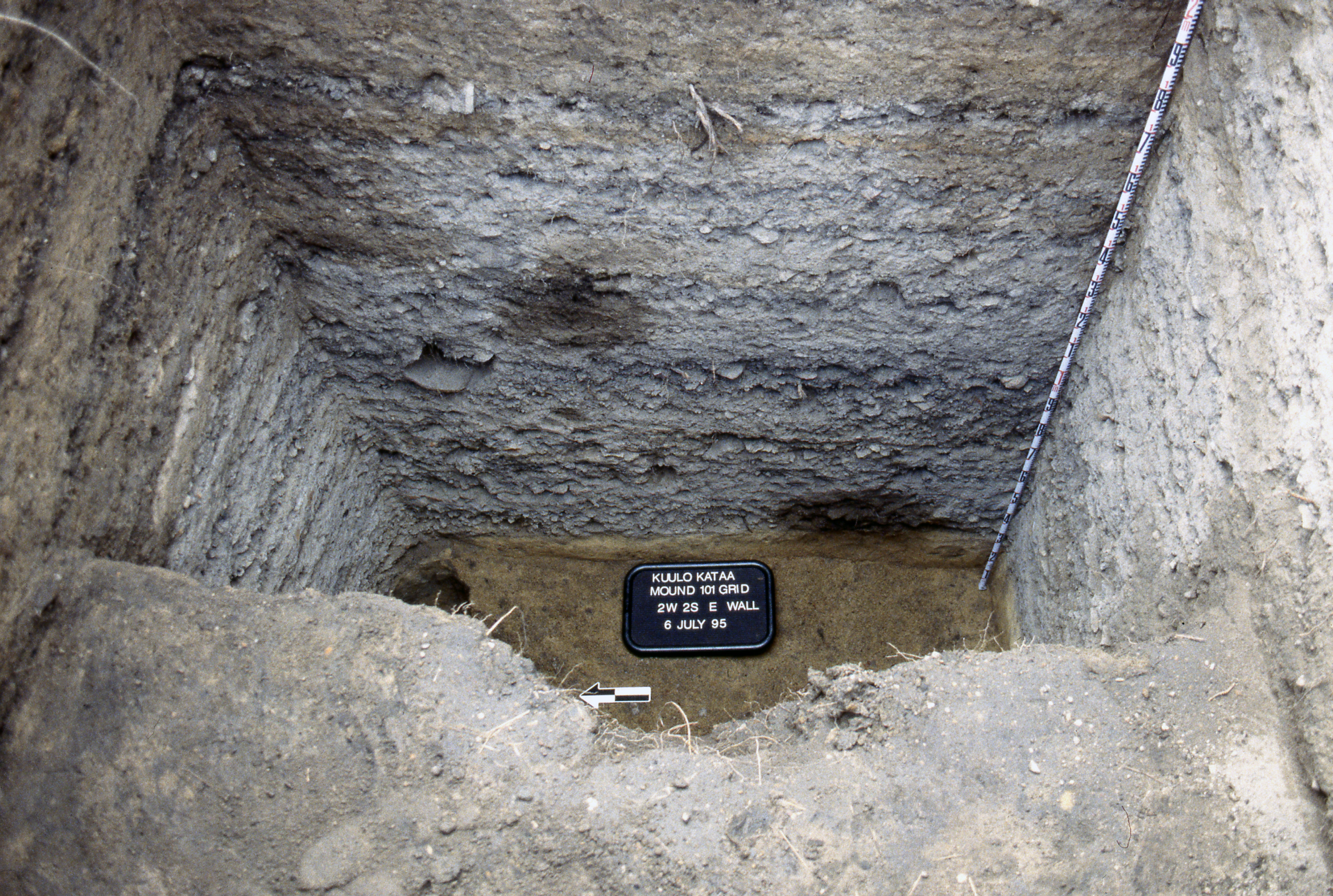 East profile wall of unit 2W2S, Mound 101, Kuulo Kataa, 1995