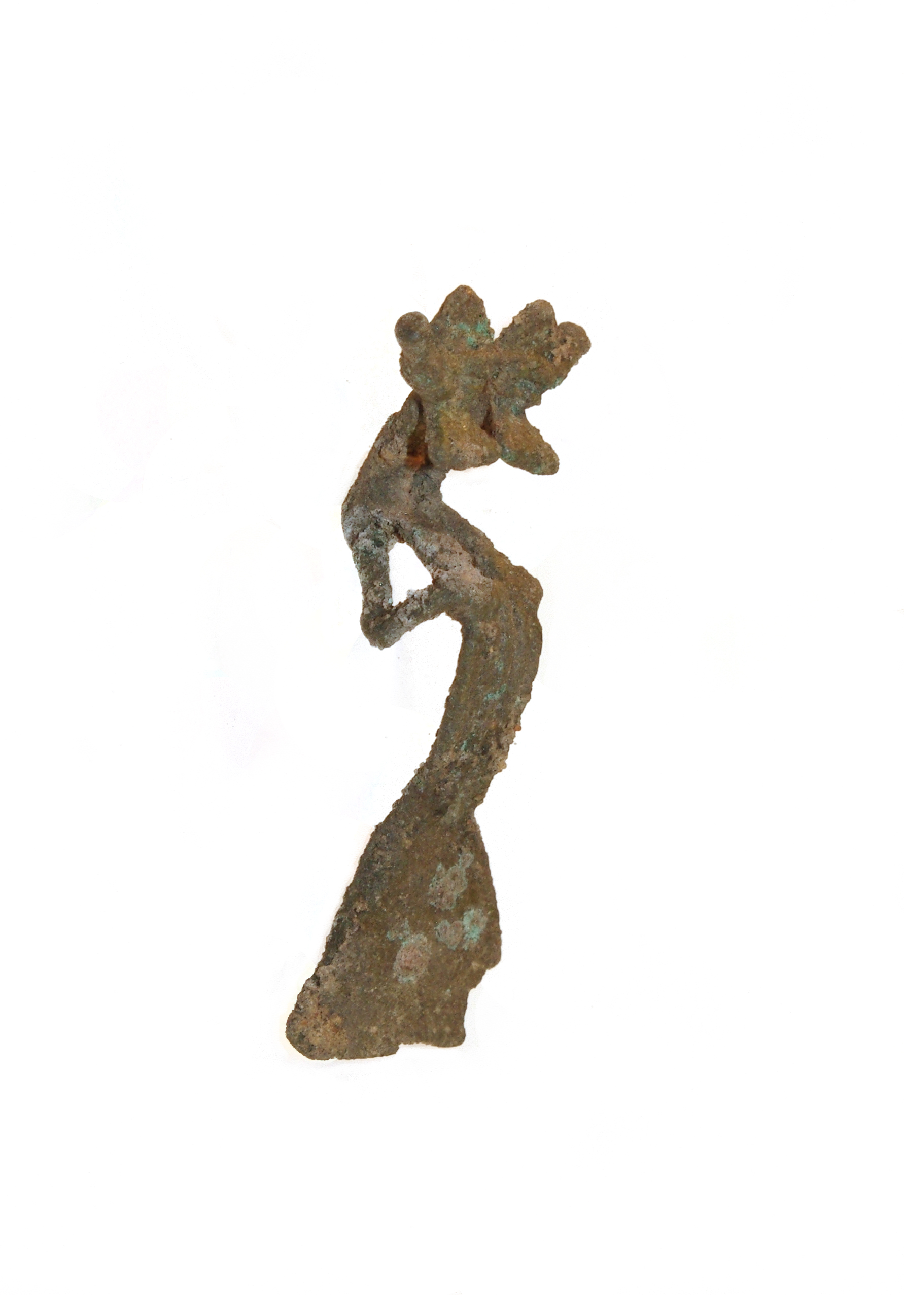 Public DepositedFront and side views of a twinned, lost-wax-cast copper-alloy figurine from Kuulo Kataa, Mound 130, Unit 95E 108N, Level 2. Height: 3.9 cm. Weight: 3.8 g. Kuulo Kataa, 4 July, 2000.