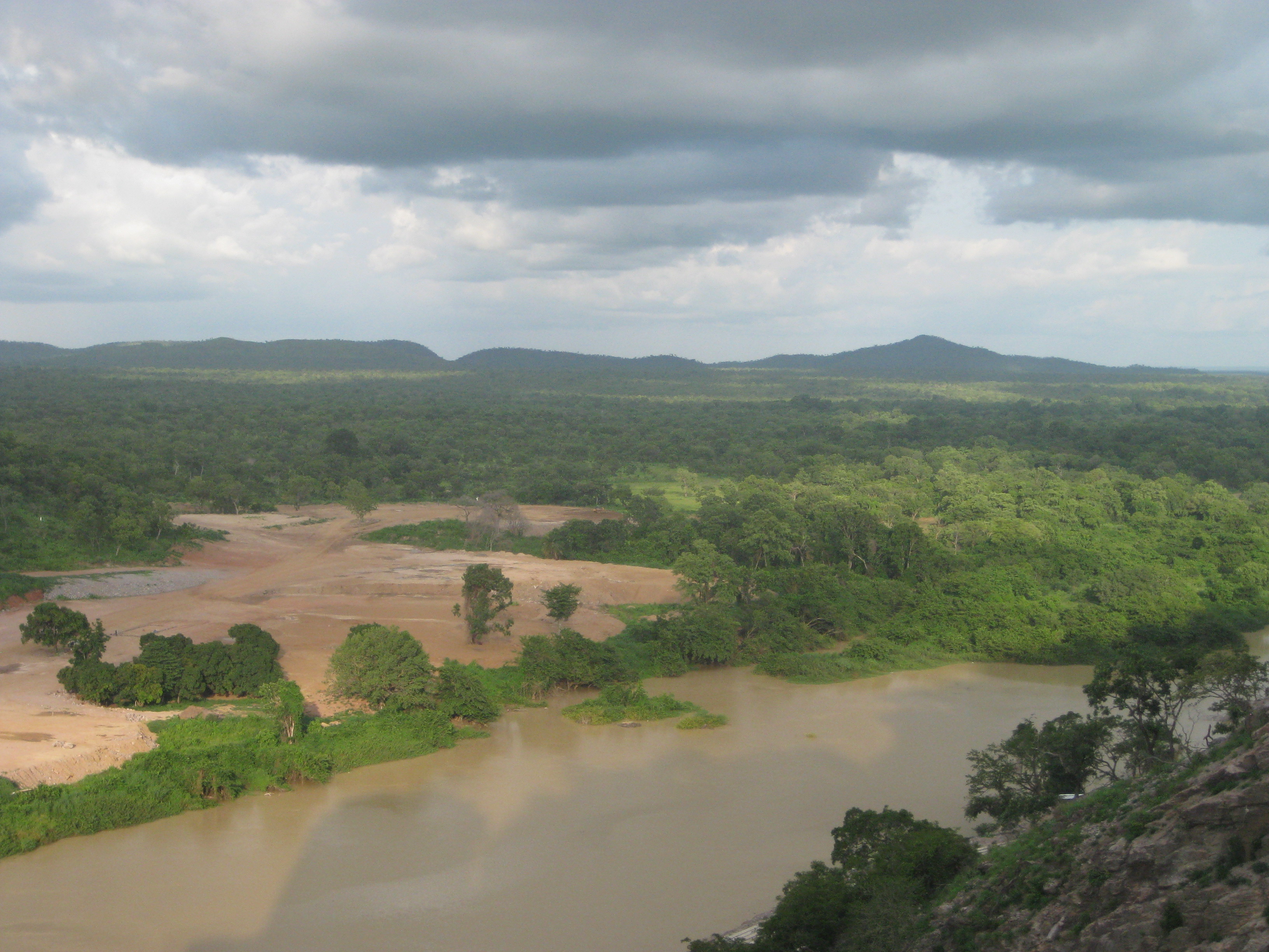 Public DepositedSinohydro, the state-owned Chinese hydropower engineering and construction company, began constructing the Bui Hydroelectric Dam in 2008. Here on the north bank of the Black Volta River at the base of the mountain is the cleared site of an Ewe fishing village, Agbegikrom (two views). The village was leveled after its inhabitants were resettled. Bui Dam site, 7 July, 2009.